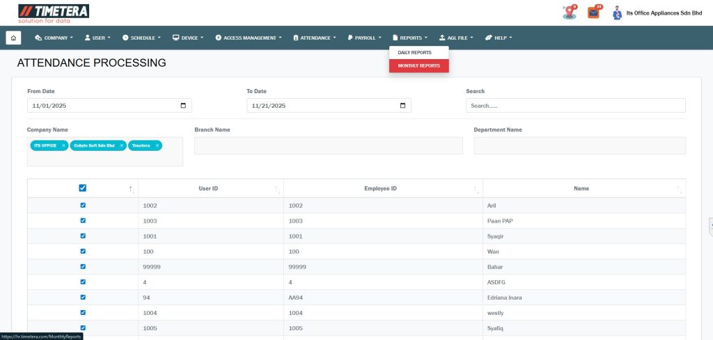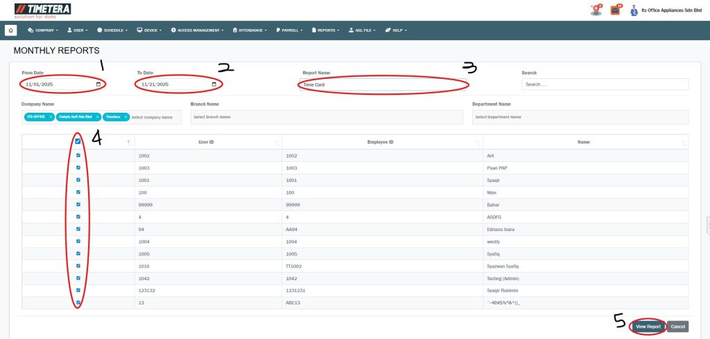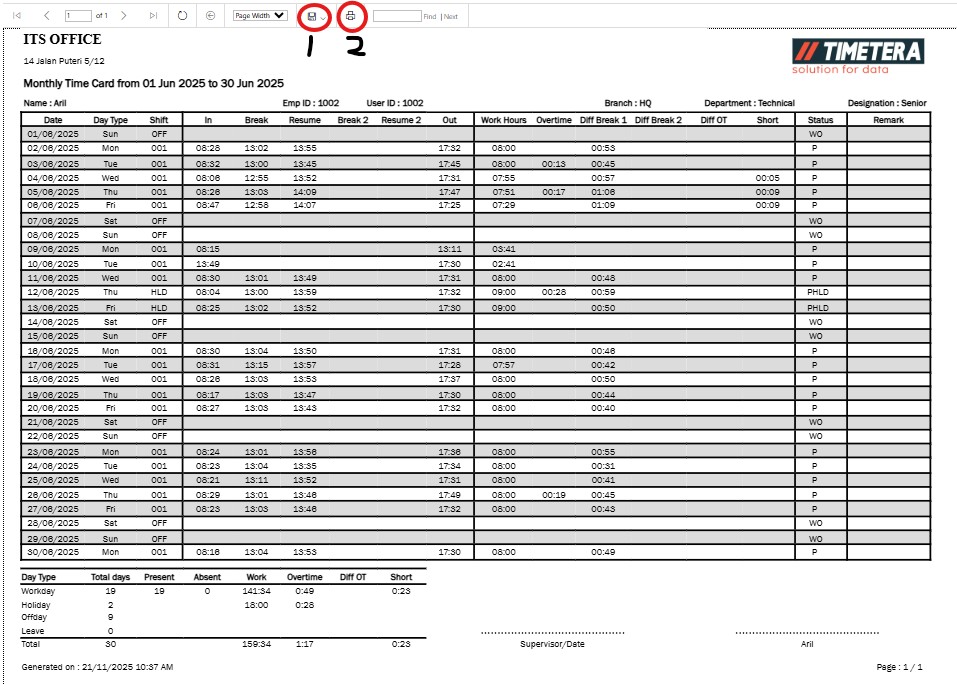 - 1) Choose the desired format (PDF / Excel / Word) to export the report.