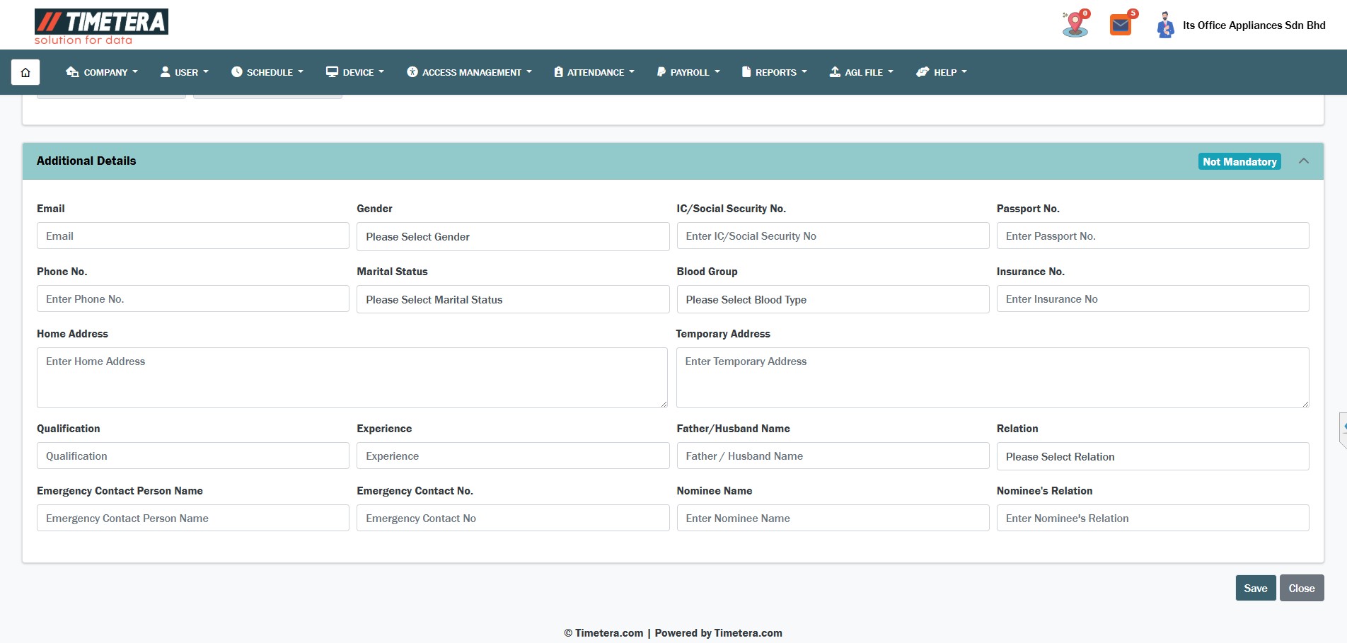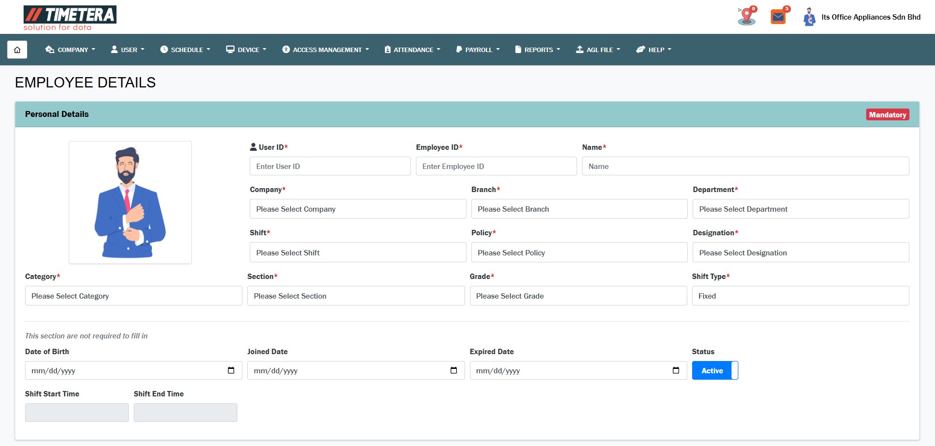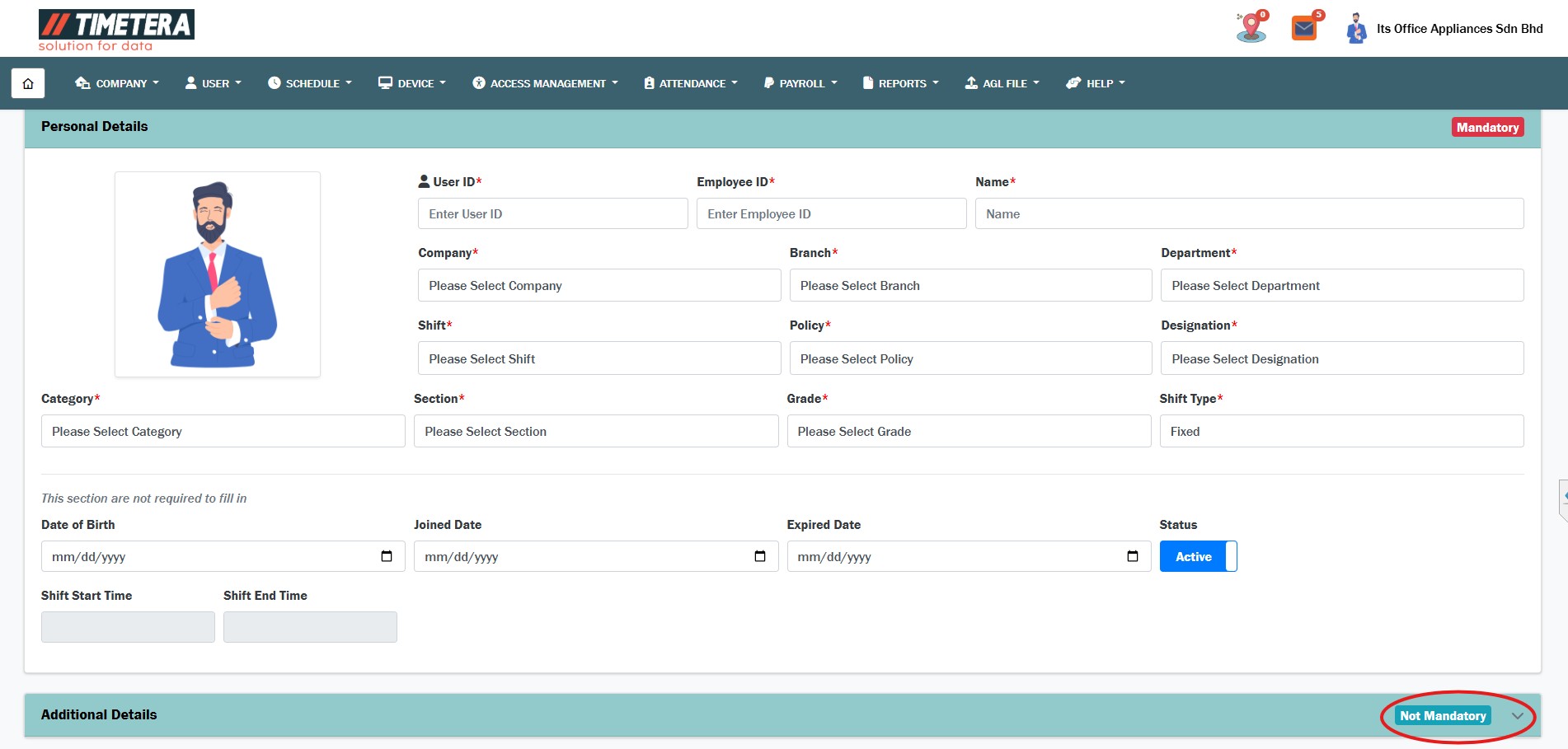 This guide will walk you through the process of adding a new user in the Timetera Cloud system. Please follow each step carefully to ensure all necessary information is entered correctly.