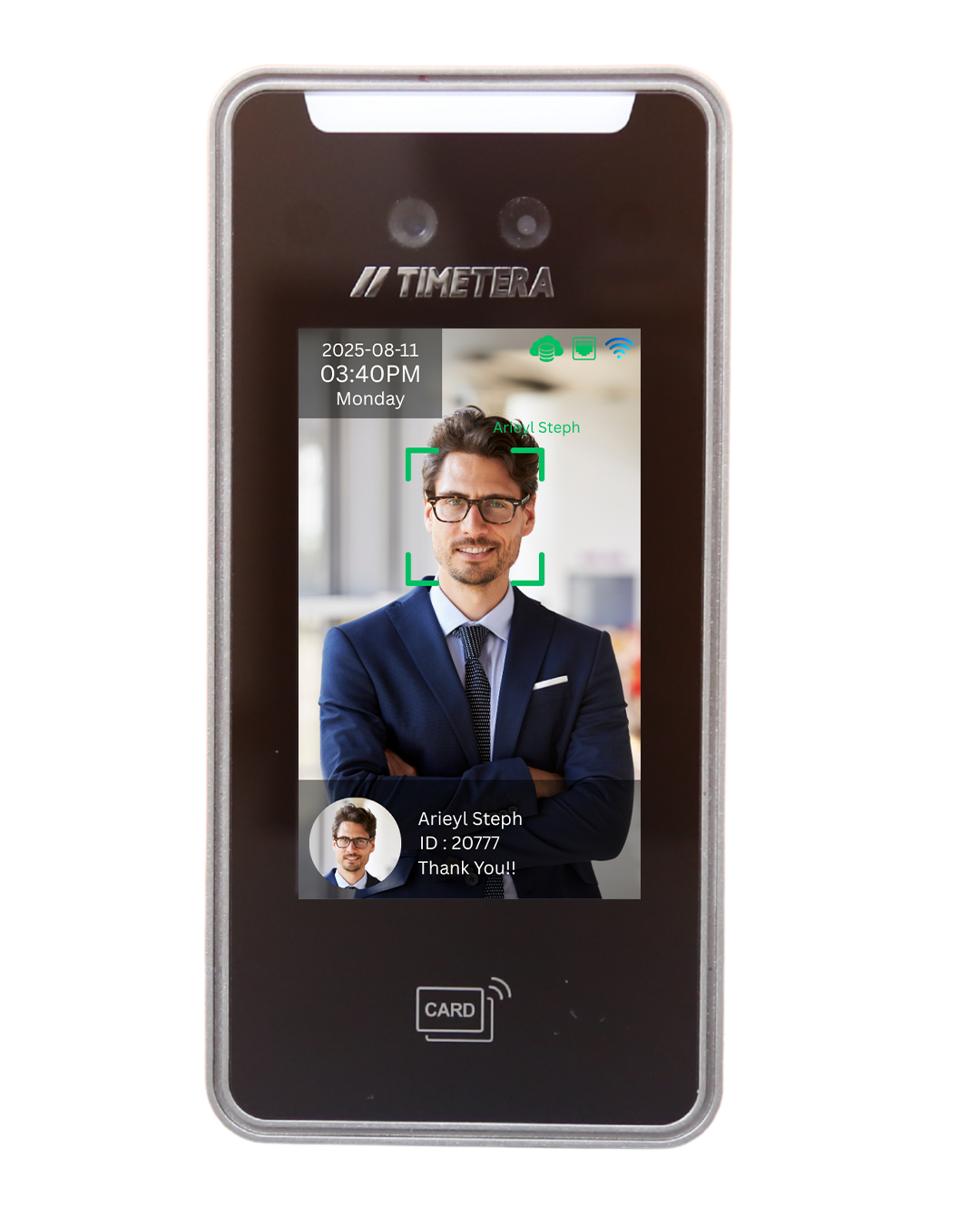 biometric device that features AI dynamic face scan technology, allowing for lightning-fast